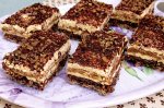 Blat: Albusurile, separate de galbenusuri, se mixeaza cu un praf de sare, pana devin o spuma tare. Adaugam pe rand, mixand continuu, zaharul,galbenusurile, cacaoa, faina, praful de copt si esenta de rom. Compozitia obtinuta o turnam intro tava dreptunghiulara...