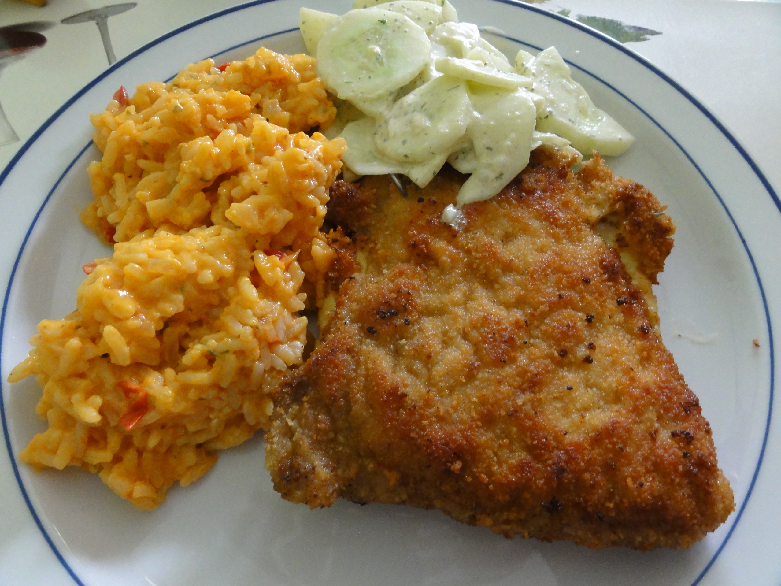 Cordon Bleu a la Klaus cu orez cu legume si salata de castraveti a la Cristina;;)