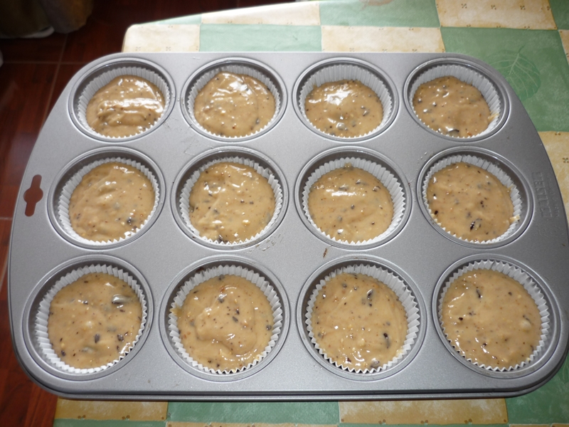 Briose cu bucatele de ciocolata si visine