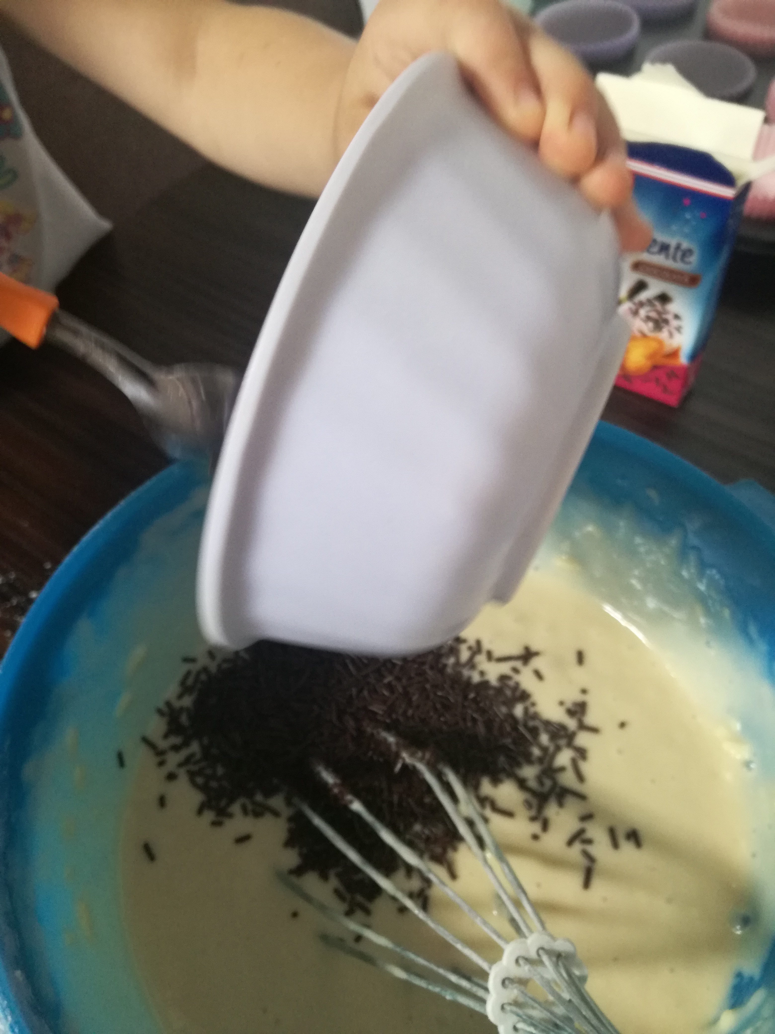Desert briose cu ciocolata alba si ornamente din ciocolata neagra
