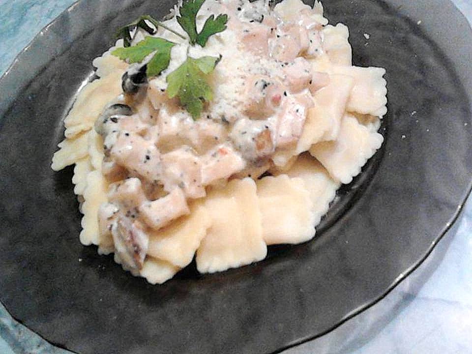 Ravioli con funghi e prosciutto di pollo