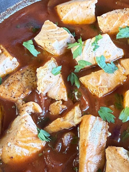 Somon cu sos de roșii și pătrunjel - Rețeta gustoasă și rapidă