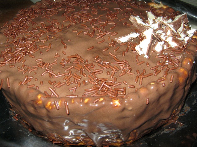 Tort "dobos" cu blat de biscuiti si crema de ciocolata