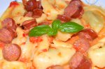 Tigaie cu taitei de casa si carnati
