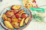 Se aează într-o tavă termorezistentă, se asezonează cu condimentele speciale pentru cartofi de la Delikat, se presară rozmarin și se stropesc cu uleiul de rapiță,...