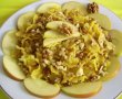 Pastele se fierb in apa cu sare timp de 8-10 minute. Se clatesc cu apa rece si se scurg bine. Se topeste margarina intr-o tigaie si se adauga pastele, marul ras cu tot cu coaja si zaharul. Se calesc 2-3 minute. Se opreste focul si se adauga nucile, zahar vanilat si scortisoara dupa gust. Sunt delicioase atat calde cat si reci.
