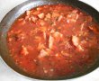 După ce se înmoaie și acestea, se adaugă: roșiile tăiate cubulețe, sucul de roșii și un pahar cu apă.
