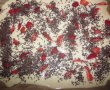 Pe blatul din tavă se repartizează în mod uniform,  căpșunile curățate și tăiate în sferturi. Apoi se preasă ștrasurile de ciocolată de la Dr.Oetker pe toată suprafața prăjiturii.