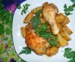 Am pus cartofii taiati cuburi, condimentele si sucul de rosii in celofan,apoi am legat cu o ata, dar nu strans (daca legam strans cand punem la cuptor pocneste,trebuie sa lasam sa iasa aerul). Cand ceolofanul a fost legat, am pus in tava si am dat la cuptor cam 40-45min.